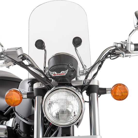 Caracteristicas: A nostalgic design that gives your bike a one-of-a-kind American style Shield mounts/dismounts in short order due to an advanced quick-release system Fits both 7/8" and 1" handlebars Made in the U.S.A.