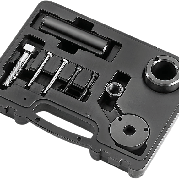 Caracteristicas: Used to remove and install the lower ball joints on Polaris ATV and side x side models with pressed-in ball joints on the front strut casting Tool includes one ball joint install adapter, puller plate, receiving cup, forcing screw, 3/4"-16 x 16L x 28H nut, two 1/4"-20 x 70L screws and two 1/4"-20 x 50L screws