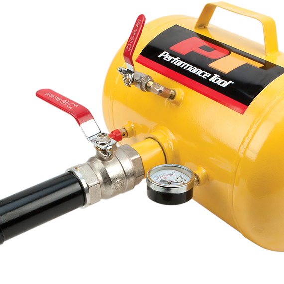 Caracteristicas: Portable tire bead seater aids in sealing beads on large and difficult tires Recommended operating pressure of 85-125 psi Heavy-duty ball air inlet and exhaust port valves Has pressure gauge and carrying handle