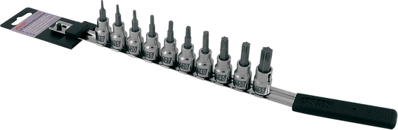 • Top-grade metric hex and Torx® bit socket sets include all the sizes needed