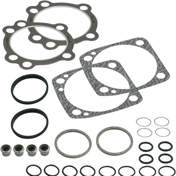 Caracteristicas: Includes set of head and base gaskets, exhaust gaskets and O-rings Layered steel head gaskets Made in the U.S.A. Kit does not include rocker box gaskets; must be purchased separately.