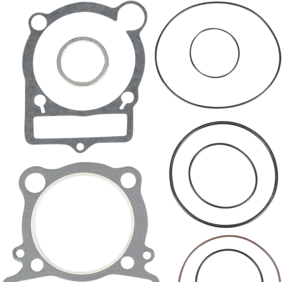 Caracteristicas: Moose can now handle all your gasket and seal needs at a fraction of OEM cost High-tech materials provide unmatched reliability and performance Rebuild the engine and transmission with total confidence as each set is designed for durability and accurate fit Oil seals are genuine OEM replacement seals Performance sets designed for a piston replacement Includes every gasket, O-ring and seal required to rebuild a top end; valve seals, head, base, exhaust, tensioner, and other misc. gaskets and O-rings Does not include formed rubber valve cover gasket Formed valve cover gaskets are included in complete kit with oil seals High-compression kits use .012" thick base gaskets to raise compression Cost-effective way to raise compression without expensive high-compression pistons or cylinder head work All gaskets made in the U.S.A.
