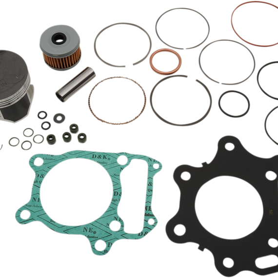 • Includes pistons, rings, pins, clips, needle bearings, head and base gaskets and intake and exhaust gaskets and oil filter for 4-stroke models
