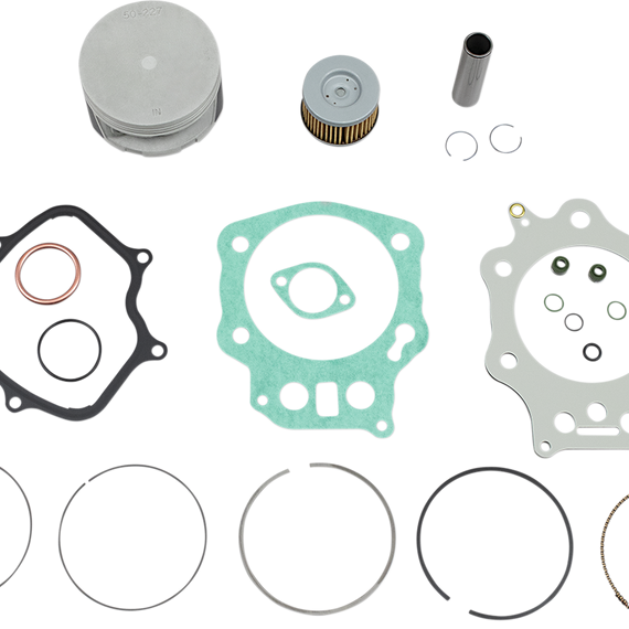 • Includes pistons, rings, pins, clips, needle bearings, head and base gaskets and intake and exhaust gaskets and oil filter for 4-stroke models