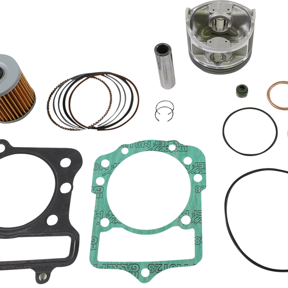 • Includes pistons, rings, pins, clips, needle bearings, head and base gaskets and intake and exhaust gaskets and oil filter for 4-stroke models