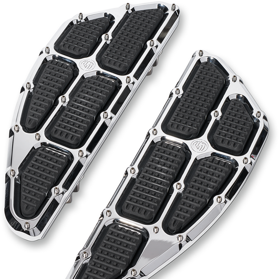 Caracteristicas: Feature a light-weight style that breaks up the large visual foot area CNC-machined from billet aluminum Stainless steel hinges with angle adjustment screws Knurled rubber pads offer a comfortable but grippy surface that also dampens vibrations Aggressive Traction style with set screws offers further traction needed when riding aggressively Stainless steel hardware included