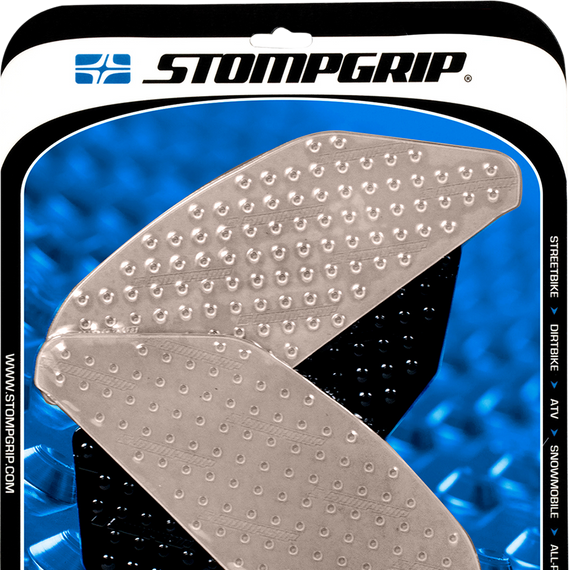 Caracteristicas: Make gripping your ride incredibly easy for increased bike control with more contact between bike and rider Provides more lower body grip and less upper body stress Ultra-clear proprietary elastomer material means paint and graphic remain visible through traction pads Non-abrasive material; designed to wear down and be replaced like a tire Will not wear down leathers as compared to grip tape Pre-molded with rounded edges that resist peeling Super-strong 3M™ peel-and-stick adhesive Made in the U.S.A.