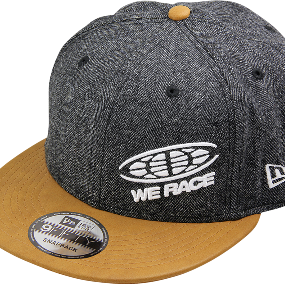 • Herringbone weave fabric on crown and synthetic leather on visor