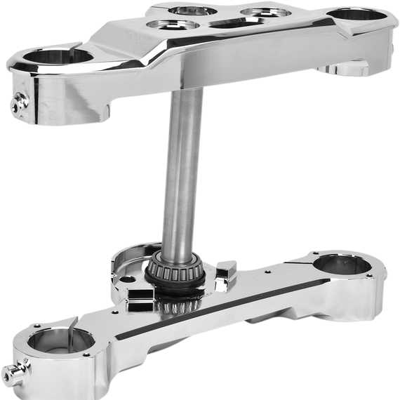 Caracteristicas: Designed to accept the original fork covers and headlight or full nacelle Maintain the stock look while increasing fork rake and overall wheelbase length For use with 21” or 23” front wheels Made in the U.S.A. Not recommended for bikes with the stock size front wheel or for installation with aftermarket fairing and/or saddlebags.
