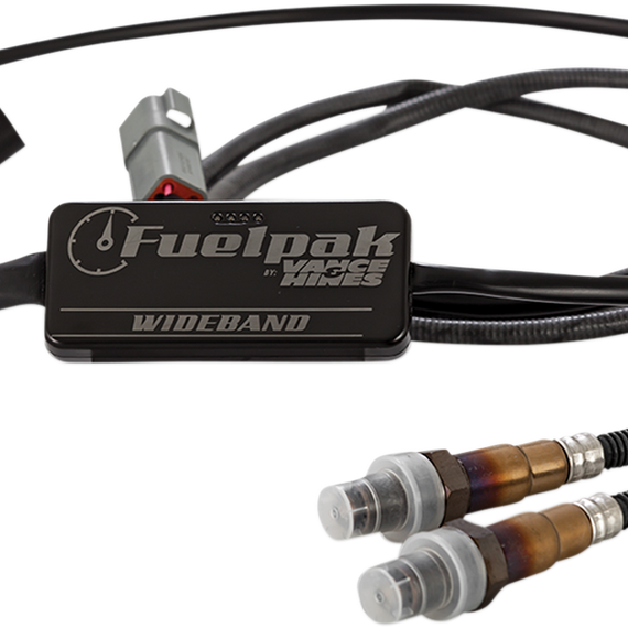 Caracteristicas: Once an FP3 is connected to the motorcycle through the Fuelpak Pro Wideband Kit, a whole new set of features are unlocked in the FP3 app software; AutoTune feature becomes more powerful, collecting four times more data with greater accuracy to enable full mapping sessions to be completed in as little as 15 minutes Fuelpak Pro dealer-exclusive cloud server allows each dyno session to be uploaded, enabling dealers to build up their own private library of FP3 maps accessible through the app or any web browser Quick plug-and-play setup installs in-line between an FP3 and motorcycle to add wideband tuning capabilities for FP3 autotuning sessions on the dyno The essential tool for carrying out fast and precise autotuning sessions with the Fuelpak FP3 on 2007 and later Harley-Davidson models Provides the tools to map any combination of performance parts and engine upgrades Consists of two 18 mm wideband Bosch oxygen sensors and a control module Creates, stores and delivers maps to FP3 users worldwide For use with Fuelpak FP3 ECU controller only