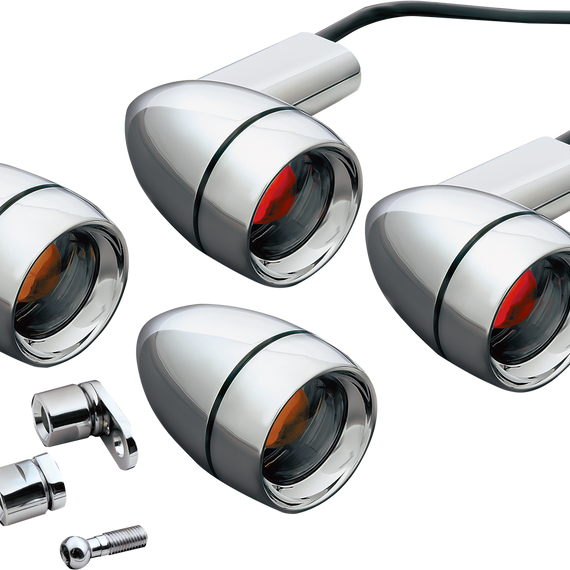 Caracteristicas: Set of four streamlined lights come with Küryakyn Deep Dish Bezels, smoke lenses and colored incandescent bulbs Each light measures 2" diameter x 3-1/2" L