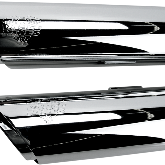 Caracteristicas: Feature 2-1/2" muffler bodies shielded by 3" full-coverage heat shields for a blue-proof look Increased performance with a throaty growl Include standard louvered core baffles Made in the U.S.A.