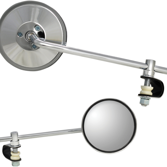 Caracteristicas: Clamp-on mirror in premium stainless steel construction Flat, round 3-7/8" lens