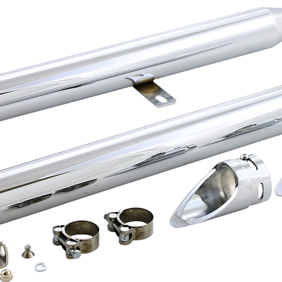 Caracteristicas: Beautifully hand polished and triple-chrome plated "no bluing" finish Includes complete mounting hardware Easy installation - instructions included Baffles are removable Finished with Scallop Exhaust Tips made in the USA using T-6061 billet aluminum