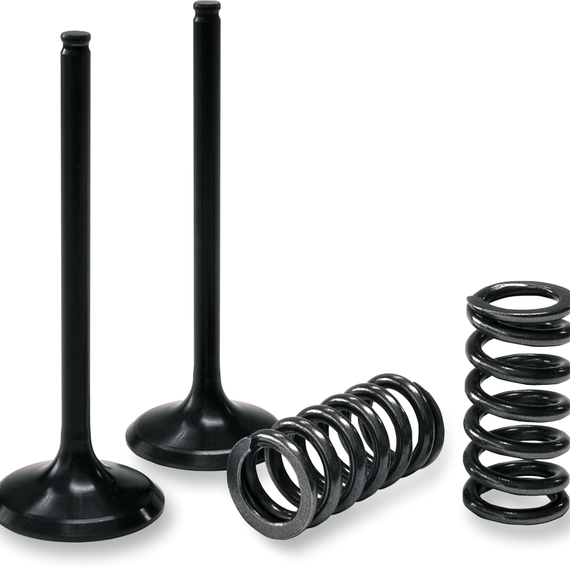 Caracteristicas: Replaces the OEM valves and valve springs Steel, nitrided valves for increased durability and less wear under extreme conditions Stronger valve springs deal with the extra weight of the steel valves Springs are made from premium chrome vanadium steel for higher performance and durability at high rpm Kit contains a set of steel intake or exhaust valves plus a set of specially designed valve springs; can be installed using the OEM retainers, bases and valve seals