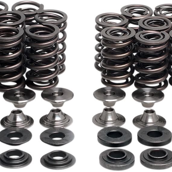 Caracteristicas: Designed to out-perform and outlast the factory valve springs Kit features lightweight, high-strength CrSi valve springs, H.T. steel base washers and titanium spring retainers Complete kit, everything you need to for a complete valve spring swap