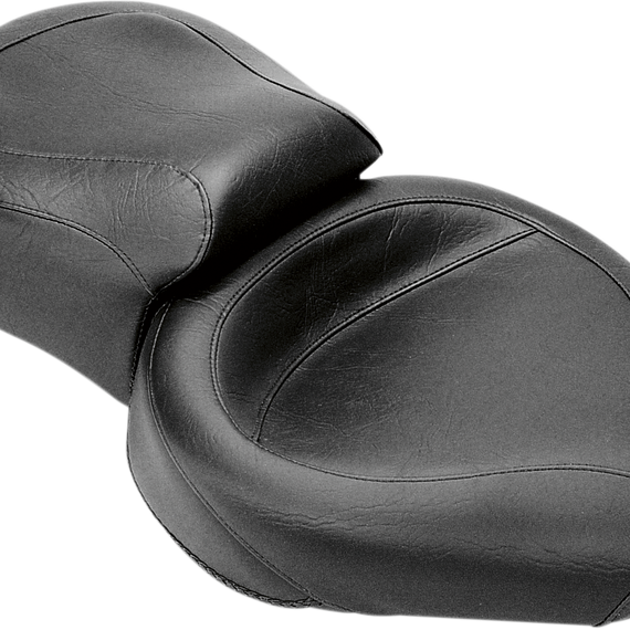 Caracteristicas: Front bucket is trimmed with a functional skirt that comes down over the frame and fender for a clean, uninterrupted look Vintage cover is made from highest quality expanded vinyl Passenger seat angles forward to support the rider's back Built on a single-piece steel base that fits like stock Made in the U.S.A.