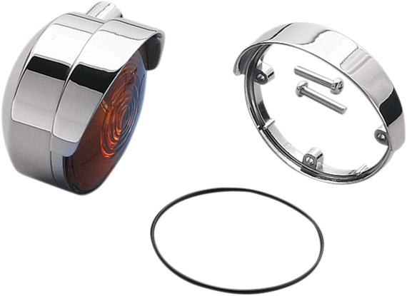 Caracteristicas: Chrome die-cast turn signal visors are designed to fit front or rear turn signals Four mounting bosses at right angles permit quick installation Each pair of visors comes complete with lens O-rings and longer screws
