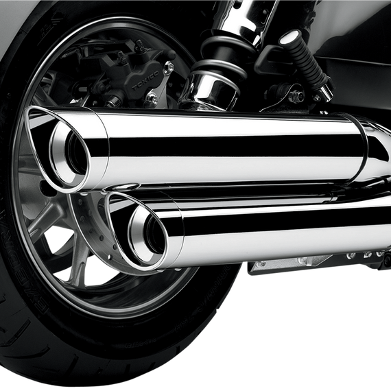 Caracteristicas: These 4-inch slip-on mufflers are a simple solution for a touch of custom look without a custom price or effort These beautiful slip-ons are capped off with massive chromed billet tips Features proprietary technology to prevent bluing, making these slip-ons virtually blue proof