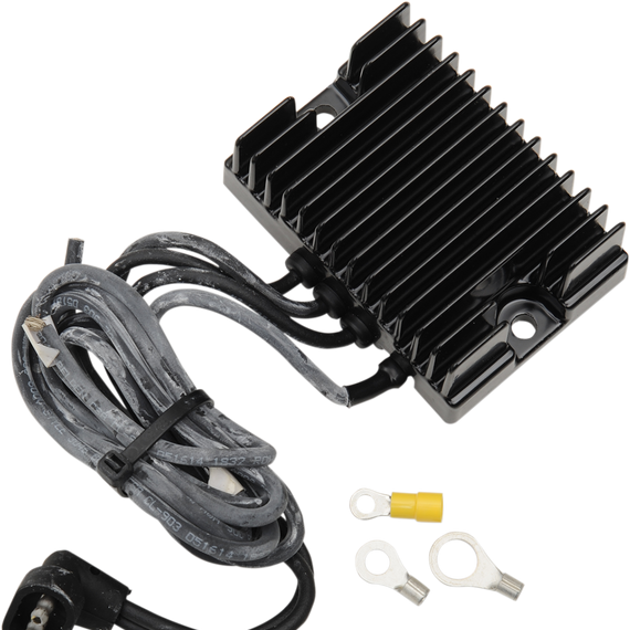 Caracteristicas: New generation series regulators reduce load on stator and decrease engine drag When not charging, regulator goes to an open circuit, so there is no load on the stator or rotor Wire harness included Made in the U.S.A.