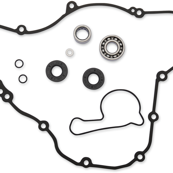 • Typical kit includes the following: bearings where applicable; rubber seals; mechanical water pump seal where applicable; side cover gasket; water pump gasket; snap rings located on water pump shaft and copper drain washers