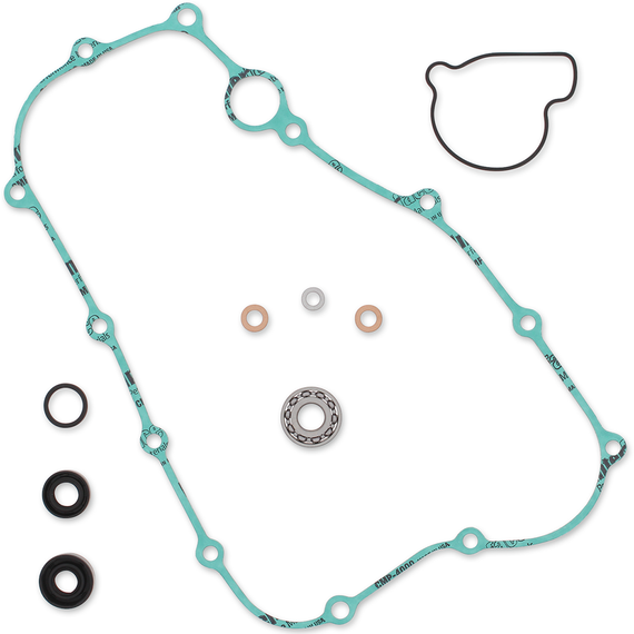 • Typical kit includes the following: bearings where applicable; rubber seals; mechanical water pump seal where applicable; side cover gasket; water pump gasket; snap rings located on water pump shaft and copper drain washers