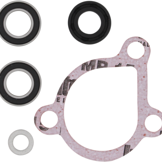 • Typical kit includes the following: bearings where applicable; rubber seals; mechanical water pump seal where applicable; side cover gasket; water pump gasket; snap rings located on water pump shaft and copper drain washers