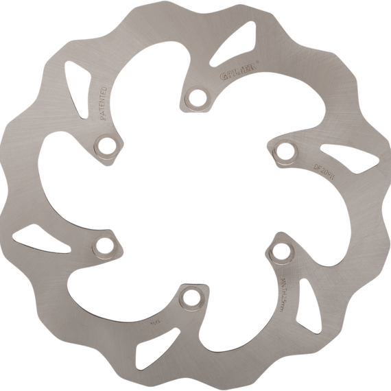 Caracteristicas: The rotor preferred by many top AMA Supercross teams Made of Galfer's unique laser-cut high carbon 420 stainless steel/8 composite Laser cut and double-disc parallel ground to assure perfect flatness and excellent feel Rotors cool as they rotate to lower brake operating temperatures Standard size rotors are direct replacement front and rear brake rotors; do not require any extra parts for install Oversized (270 mm) rotors available for select models (rotor only, do not include brake caliper relocation bracket) Manufactured in Spain