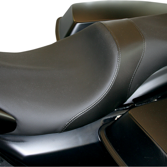 Caracteristicas: The 2-up for daily use Designed with a passenger in mind, this 2-up seat offers the clean looks of a solo with some cushion for a passenger The seat base hugs the frame while maintaining the width of the fender The covers are constructed using high-quality leather inserts and top-grade vinyl sides Made in the U.S.A.