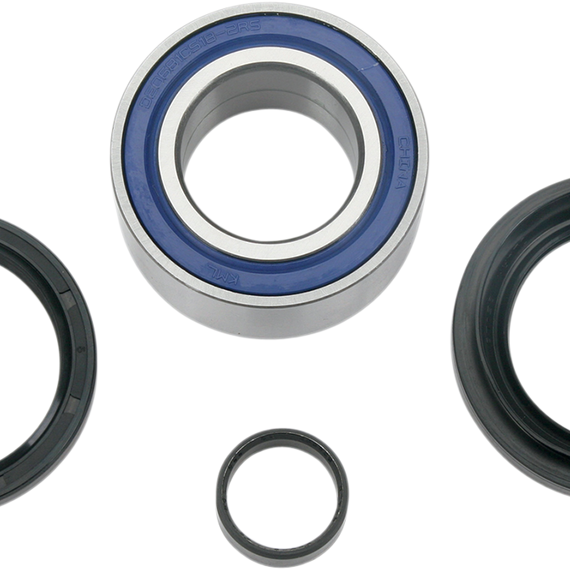 Caracteristicas: Bearing seals are double-lipped rubber that provides superior exclusion of water, dirt and sand with improved grease retention Steel garter spring guarantees constant pressure on the axle shaft, extending the life of the seal Wheel seals are type TC nitrile elastomer, specifically designed to keep out water, dirt and sand Seals have a rubber-coated outside diameter that creates an optimum seal at the hub High-speed, low-drag bearings are EMQ quality Kits include all required bearings and seals