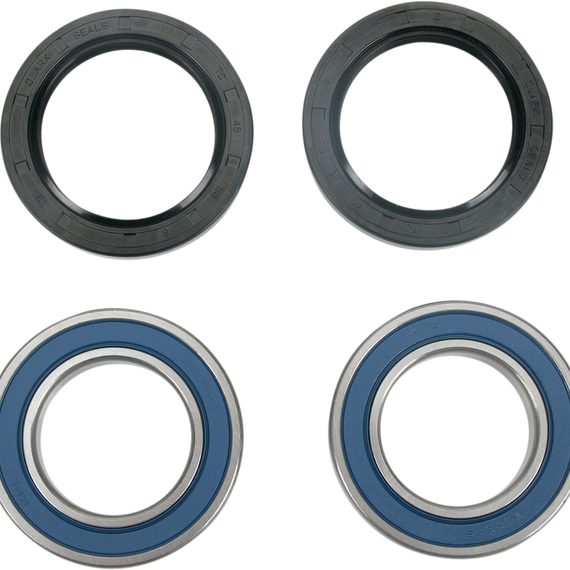 Caracteristicas: Bearing seals are double-lipped rubber that provides superior exclusion of water, dirt and sand with improved grease retention Steel garter spring guarantees constant pressure on the axle shaft, extending the life of the seal Wheel seals are type TC nitrile elastomer, specifically designed to keep out water, dirt and sand Seals have a rubber-coated outside diameter that creates an optimum seal at the hub High-speed, low-drag bearings are EMQ quality Kits include all required bearings and seals