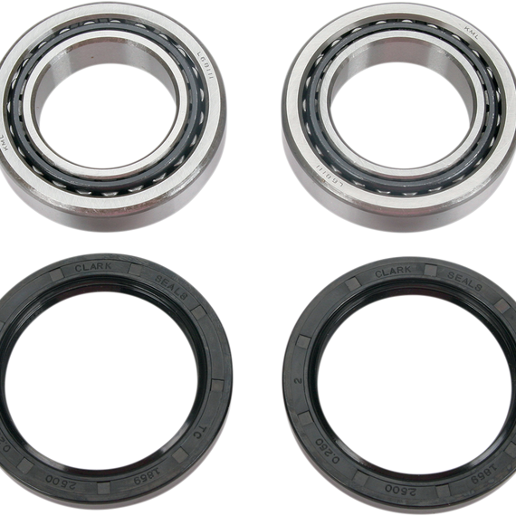 Caracteristicas: Bearing seals are double-lipped rubber that provides superior exclusion of water, dirt and sand with improved grease retention Steel garter spring guarantees constant pressure on the axle shaft, extending the life of the seal Wheel seals are type TC nitrile elastomer, specifically designed to keep out water, dirt and sand Seals have a rubber-coated outside diameter that creates an optimum seal at the hub High-speed, low-drag bearings are EMQ quality Kits include all required bearings and seals