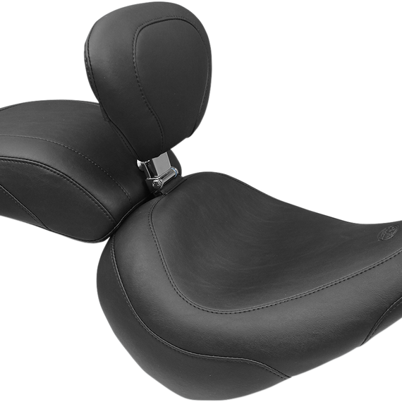 Caracteristicas: Cut narrow at the nose so the rider can easily plant their feet on the ground Sits the rider slightly lower but at a similar reach to controls compared to stock High-quality expanded vinyl cover combines the appearance of leather with the durability to withstand the elements Matching passenger seat offers a spacious 10” width for passengers and is 2.5” wider than stock passenger area