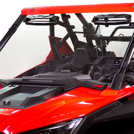 Caracteristicas: Vents allow for passenger cooling or windshield defogging Gasket seals prevent water from entering vents Windshield made from 2-sided hard-coated polycarbonate Works with most roofs Handles trailer speeds up to 65 mph Windshield features two built-in vents