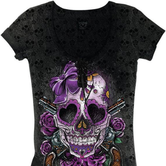 Women's Day of the Dead Gun T-Shirt - XL