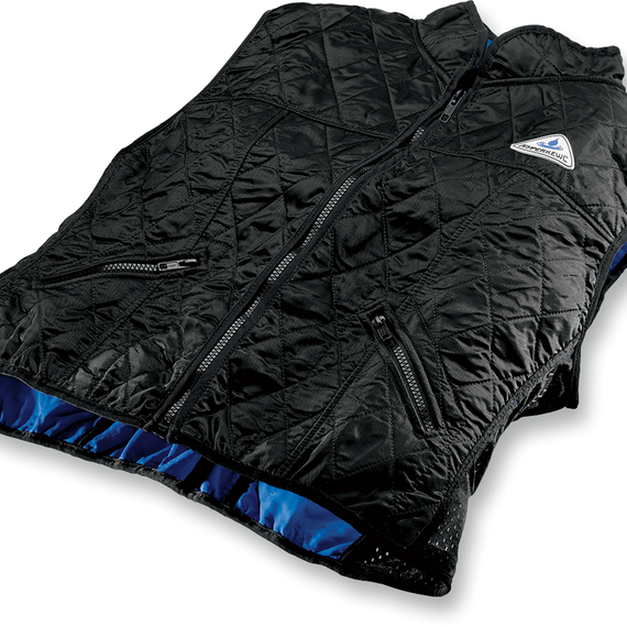 Caracteristicas: Specifically designed for women Comfortable, quilted nylon outer with HyperKewl™ fabric inner, water-repellent nylon liner and black cotton-poly elastic trim Lightweight, durable and washable Includes a fitted front seam and a gathered waist in the back High mandarin collar for additional cooling relief and sun protection Front pockets with zipper closure designed especially for bikers Provides 5-10 hours of cooling relief per soaking