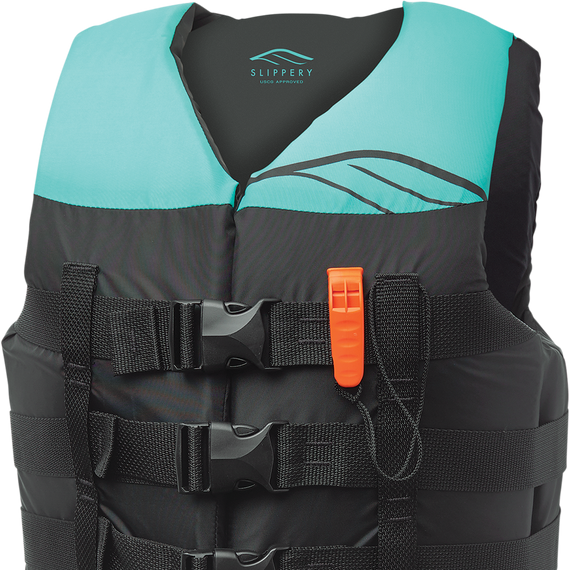 Caracteristicas: Three 1.5 belts with heavy duty buckles for support Features a "D" ring for clip-style lanyards Lightweight, nylon construction Includes a safety whistle