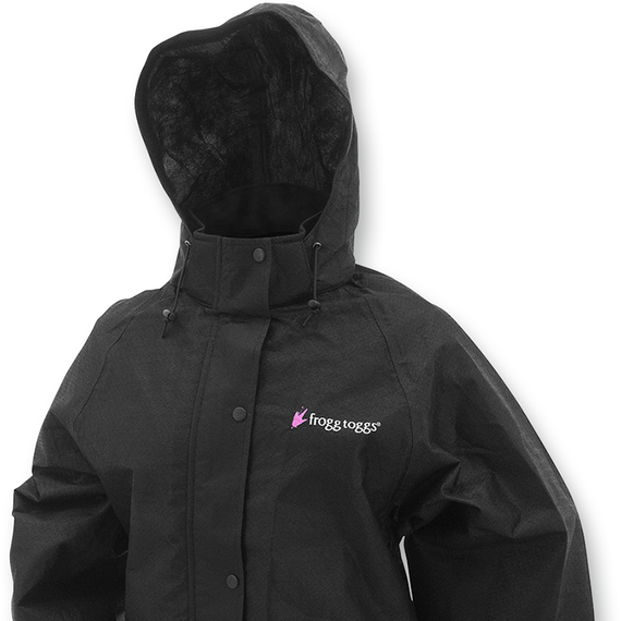 Caracteristicas: The Classic Frogg Toggs rain jacket designed by women to fit women Made of waterproof, breathable, 100% recyclable, non-woven polypropylene material Lightweight 17 oz. design makes this jacket compact and easy to store Roomy bomber-style jacket features fully adjustable, attached, tuck-away hood with zip closure; zippered hand warmer pockets; 1" elastic waist and wrist bands; front zipper closure with snap shut storm flap; molded polymer zippers and polymer snaps