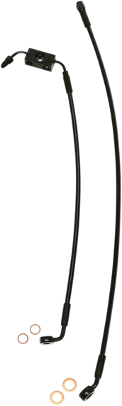 Caracteristicas: Inner PTFE tubing braided with XR stainless steel reinforcement embedded in a tough nylon outer jacket offers exceptional protection for paint or chrome All brazed manifold construction eliminates leaks, alignment problems, and unattractive threaded connections for a sleek appearance Designed to be compatible with Harley-Davidson® ABS requirements for stock and alternate length brake lines Manufactured with an enhanced construction for extreme braking response and durability 3AN connections for easy installations Made in the U.S.A.