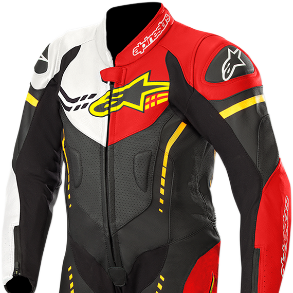 Caracteristicas: Premium leather main chassis construction from 1.3mm genuine bovine leather Ergonomic chassis incorporates perforated leather panels Multi-panel, body-mapped construction that incorporates stretch panels in the arms, knees and at the crotch Leather accordion stretch panels on the rear shoulders, knees and lumbar rear Integrated Polyethylene (PE) foam padding on the chest, hips, coccyx and back for improved comfort and fit 3D multi-panel knee construction with removable, adjustable Polyurethane (PU) Sport knee sliders One-piece internal knee, tibia and shin protectors Shoulder protector design features over-molded Thermoplastic Polyurethane (TPU) guards layered under the outer fabric for optimized levels of protection and comfort Snap button system to integrate Alpinestars Nucleon back protector (sold separately) Chest and back compartment have PE padding (Nucleon chest and back protectors available separately) Aerodynamic ventilated back hump positioned with 3D mesh panels for superior cooling Mesh liner for excellent comfort and ventilation Inner waterproof pocket for safe storage Innovative calf expansion gussets improve the range of fit and riding comfort