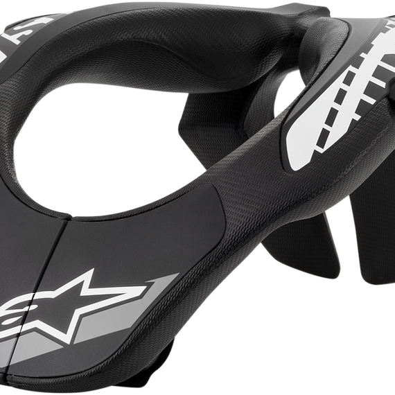 Caracteristicas: Compact, easy-to-use design for kids ages 8-14 Ergonomic design and engineered shape for ideal fitment with Alpinestars A-5 S Left and right rigid frames are made from a polymer compound combination with the internal smooth edge made of soft-injected EVA to provide a great fit and stable positioning Overall frame construction dissipates energy loads by transmitting them across the back Flexible back connector between the left and right frames allows the neck support to follow the body's movements when riding Chin plates on the front dissipate pressure of the helmet when impacting Quick-release closure system to easily engage or disengage the neck support Compatible with Alpinestars A-5 S; can also be worn on its own using the A-strap (included in the YNS kit)